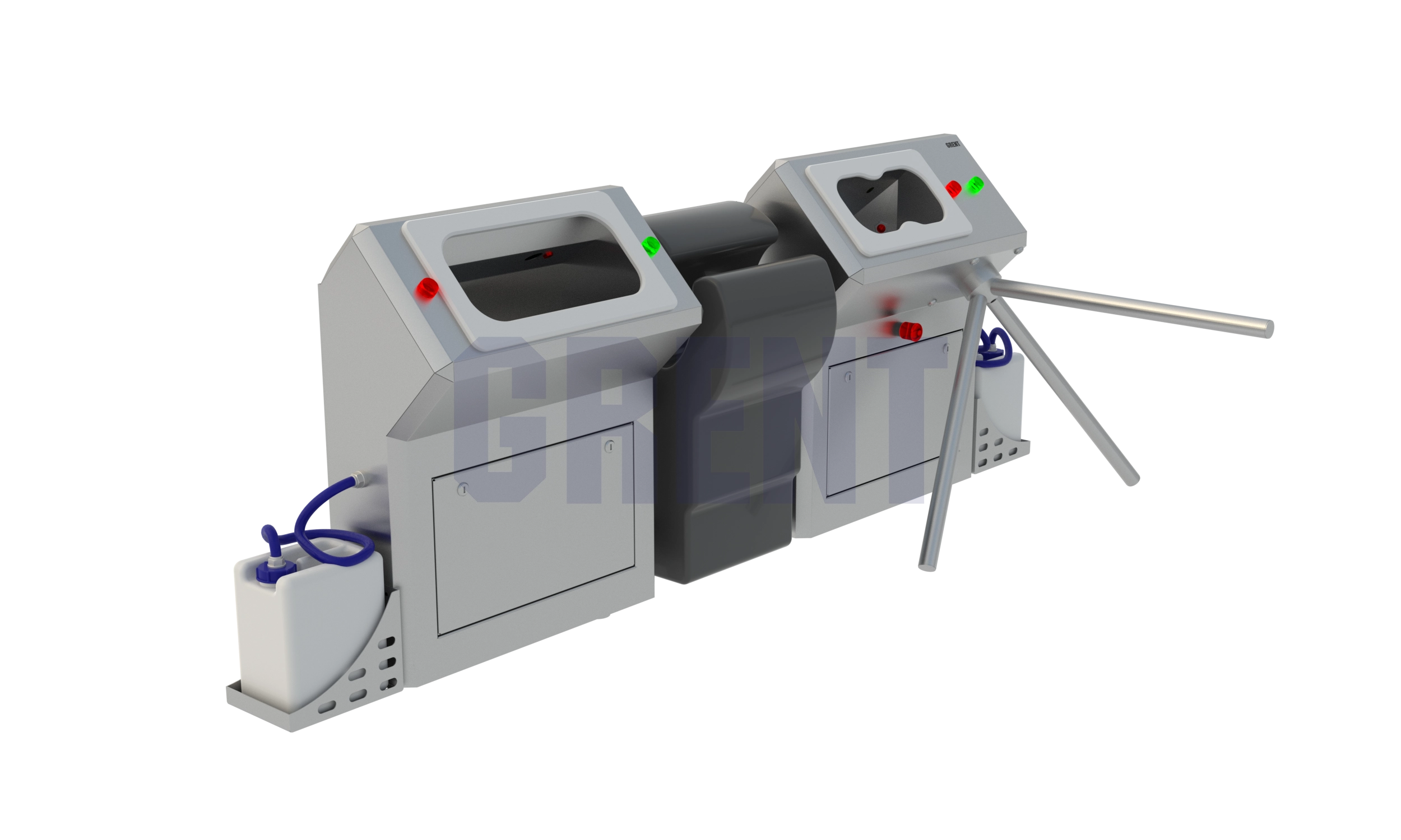 - Турникет собственной разработки, механизм которого полностью сделан из нержавеющей стали. С системой ручного и автоматического отключения(в случае подключения станции к системе пожарной сигнализации).