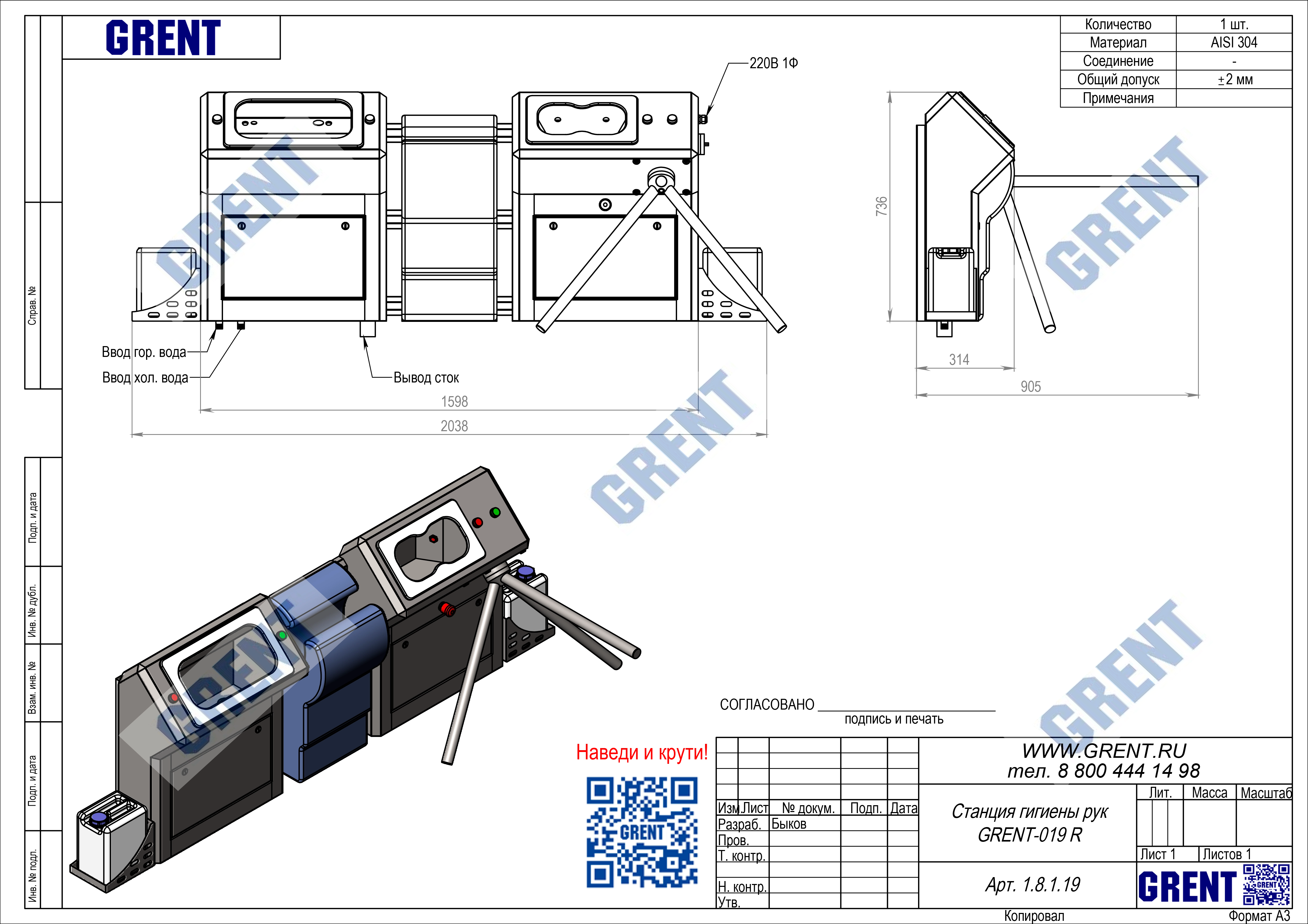 Станция гигиены GRENT 019 R предназначена для мытья и дезинфекции кистей рук при входе в чистые помещения на производстве.